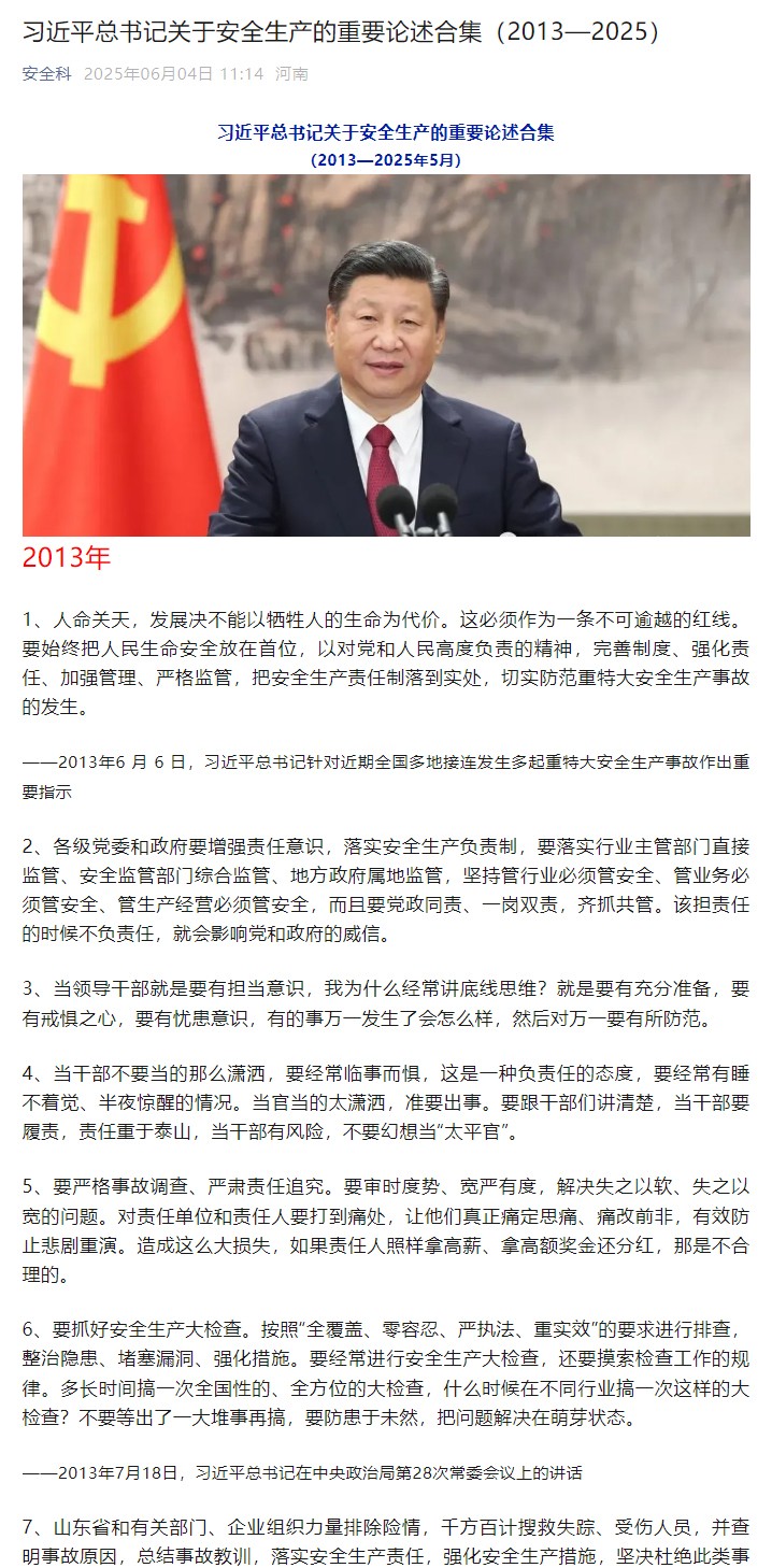习近平总书记关于安全生产的重要论述合集(2013—2025)